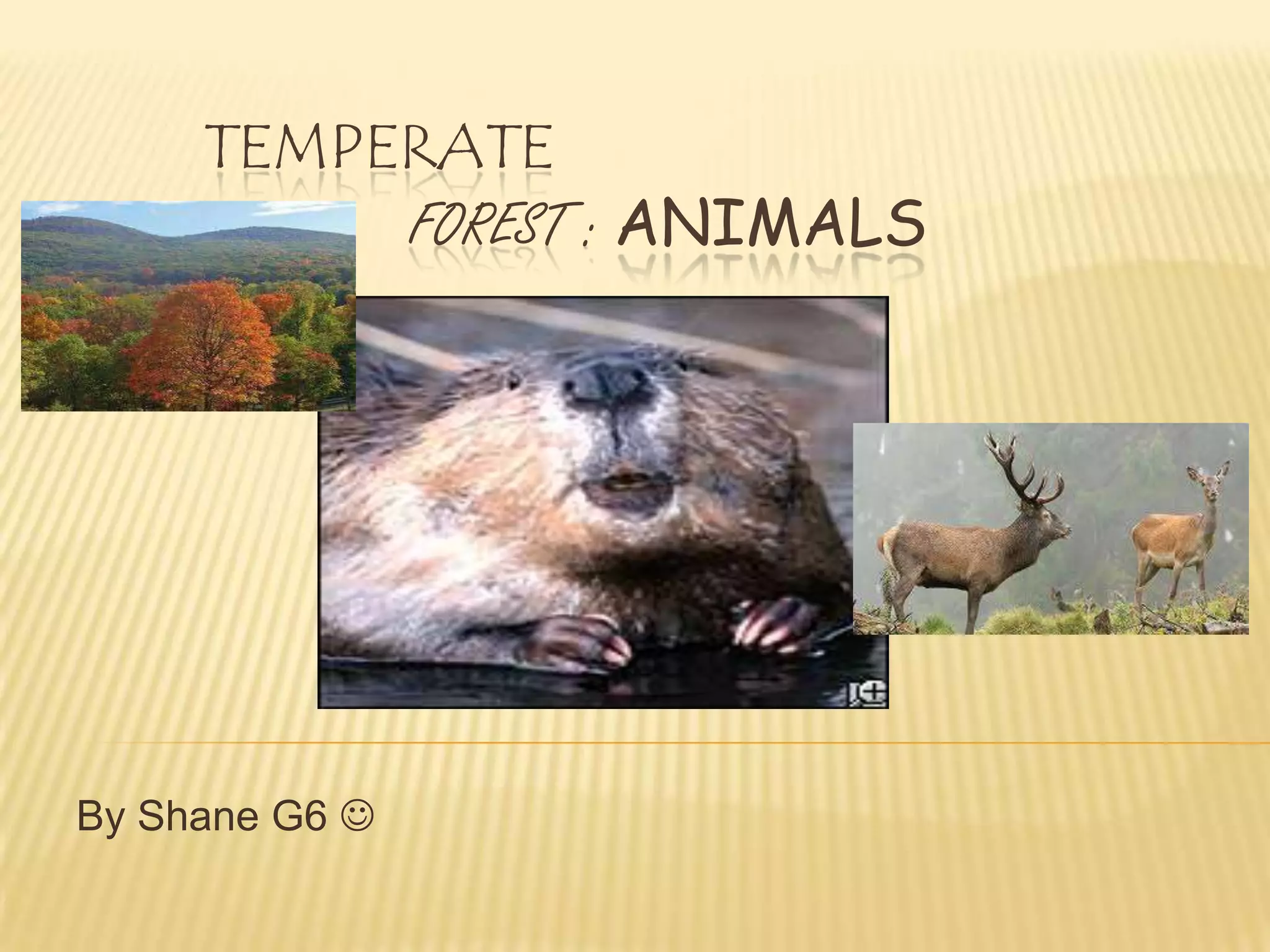 This document provides information about 15 different animal species found in temperate forests: