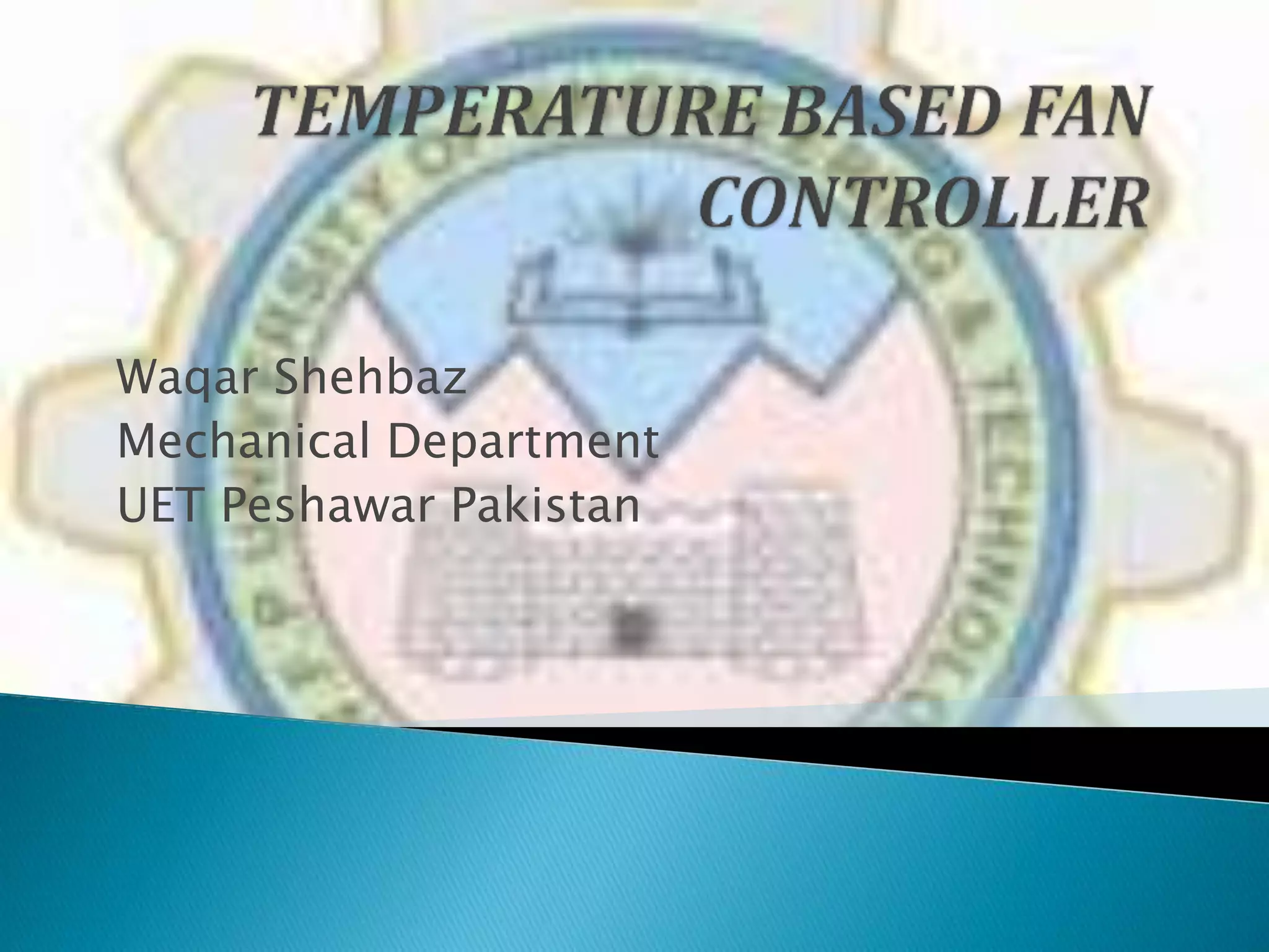 This document describes an automatic temperature-controlled fan project using an Arduino Uno microcontroller. The fan will automatically turn on when the temperature reaches 35°C as measured by a temperature sensor, and will turn off again when the temperature drops below 35°C, in order to regulate the environment and reduce energy consumption. The system includes an Arduino, temperature sensor, LCD display, DC motor fan, battery power source, and connecting wires. Potential applications include use in homes and industries to assist people and save electricity by automating fan control based on temperature changes.
