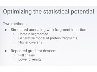 • Works better for protein structure prediction