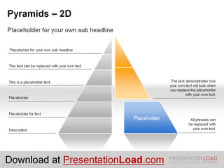 2. Several slides containing diagrams, charts, images and text examples that can be used in a presentation.