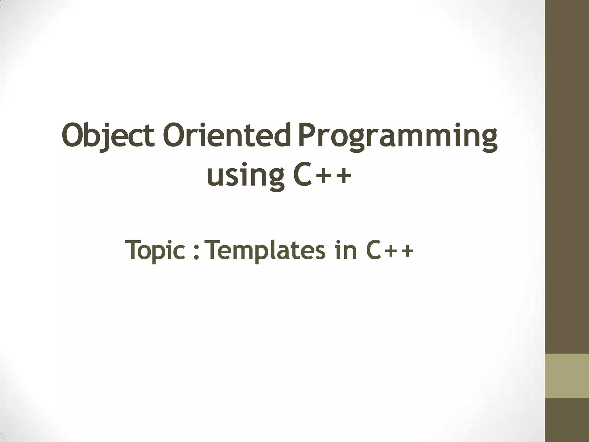 Templates in C++ allow the construction of generic functions and classes that can work with different data types. Some key points: