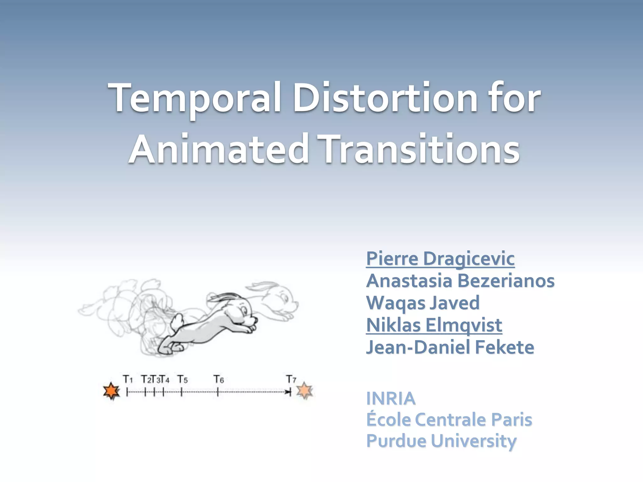 This document discusses the principles of animated transitions, focusing on the significance of pacing, particularly the 'slow in/slow out' technique, which enhances predictability and supports human visual perception. A user study is presented, confirming that adaptive speed is most effective for complex transitions, while constant speed suffices for simpler ones. The findings emphasize the rationale behind animation choices and their impact on viewer experience, advocating for design approaches that prioritize viewer comprehension and visual tracking.