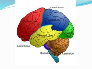 The temporal lobe is responsible for several important functions including speech, memory, reading, emotional responses, auditory responses, visual processing, and olfactory functions. It contains areas like Wernicke's area that control language processing and comprehension, as well as the hippocampus which plays a crucial role in long term memory retention. Damage to the temporal lobe due to a stroke can cause disturbances in functions like auditory and visual perception, attention, language comprehension, memory, and behavior.