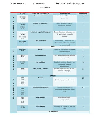 C.E.I.P. TRULLÀS CURS2016/2017 ÀREA D’EDUCACIÓ FÍSICA /SUSANA