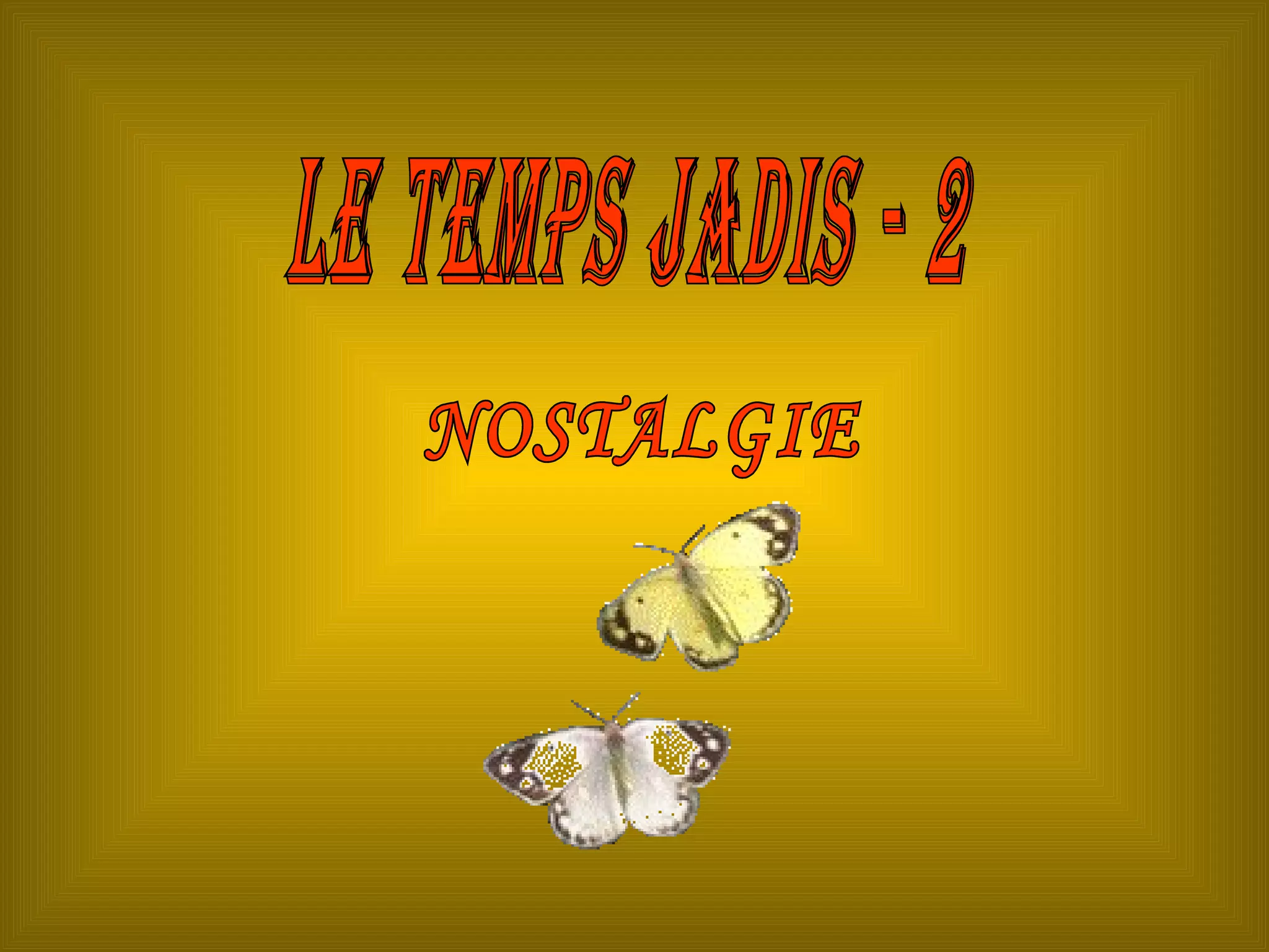 This very short document appears to be in French and discusses nostalgia for times past. It mentions "LE TEMPS JADIS" which means "times of yore" or "days of old" and "NOSTALGIE" which means nostalgia. It ends abruptly with "FIN CESAR" which means "end Cesar".