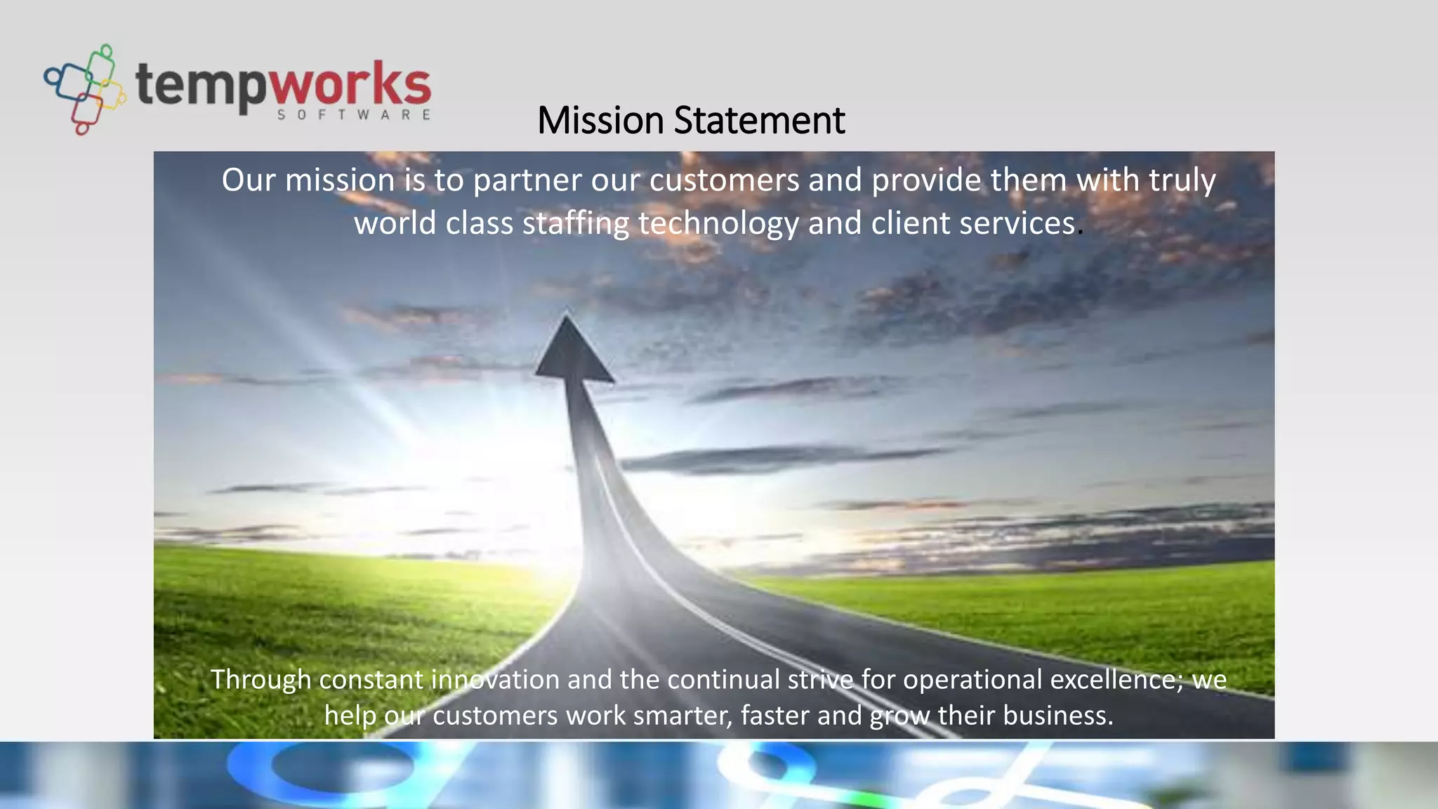 TempWorks provides staffing software and services to help customers manage temporary and permanent recruitment. It launched in 1997 and now has 130 employees serving 450 clients globally. The document describes TempWorks' mission, history, client success stories, key features of its Enterprise software including HR and candidate portals, and screenshots of the software interfaces for managing job orders, timesheets, payroll, and more. It aims to help customers work smarter, faster through constant innovation.