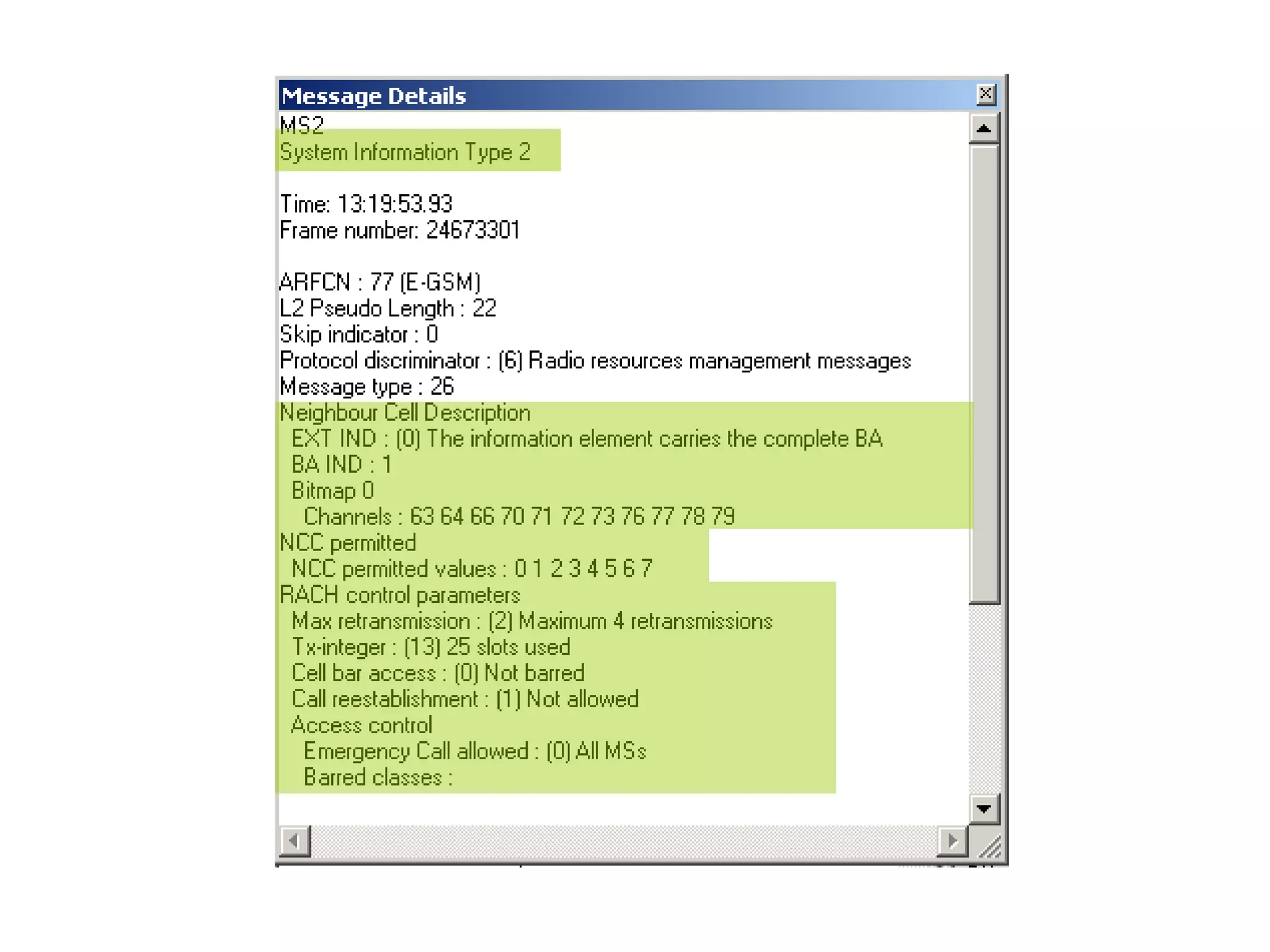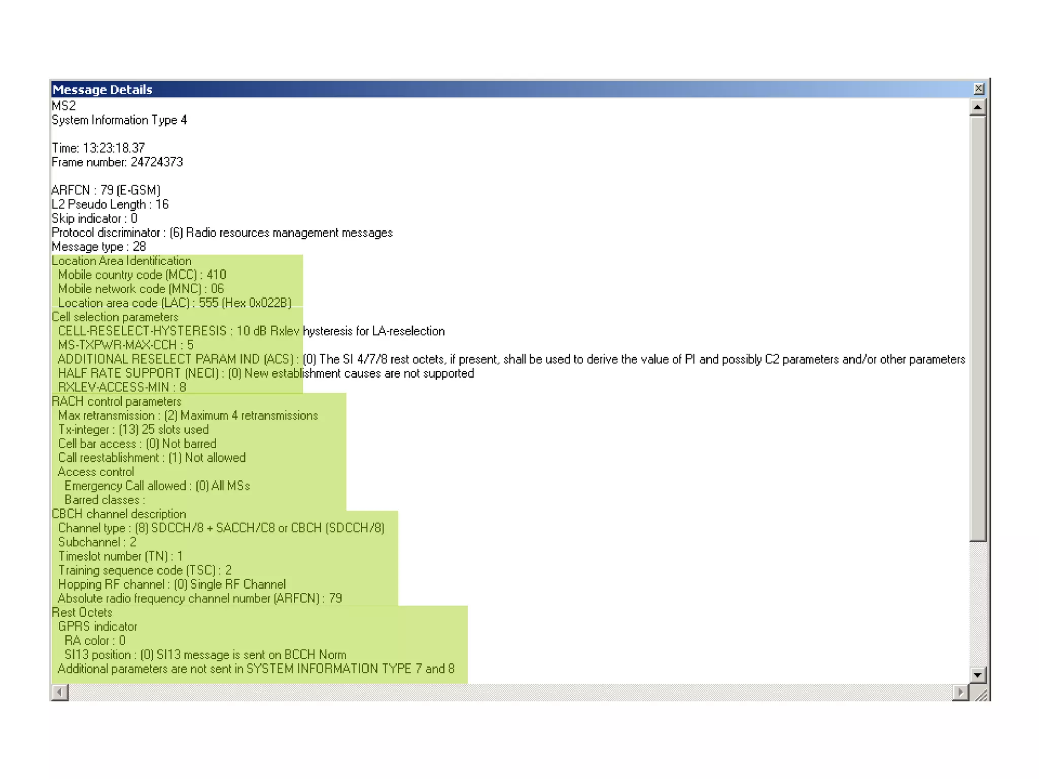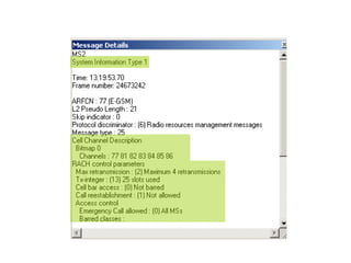 2) The types of information displayed in TEMS windows including cell identity, signal strength, quality, and timing advance measurements.