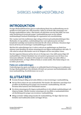 rättigheter ägs av Sveriges Marknadsförbund. Du får gärna citera rapporten helt eller delvis, under förutsättning att källan