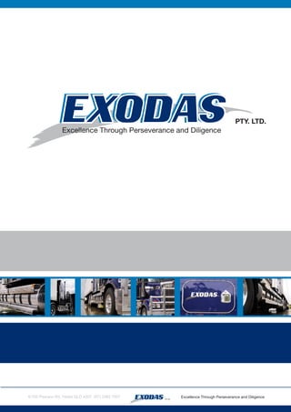 Exodas is a transport and warehousing company based in Yatala, Queensland that commenced operations in 2001. It has since expanded to include other depots across Queensland, New South Wales, and Victoria. The company operates a fleet of 24 prime movers, 6 rigid trucks, 51 trailers, and 4 dollies to transport a wide variety of freight across regular and contract routes. Exodas prides itself on high levels of customer service and communication through its experienced staff who work to ensure customer needs and deadlines are met.