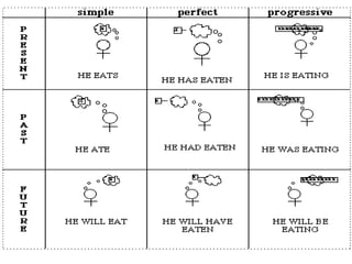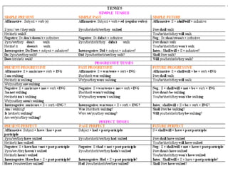 This document provides links to grammar tense charts that explain the present, past, and future tenses. The first link is to a chart on an ESL website that outlines the present, past, and future tenses. The second link also contains information about verb tenses and their usage.