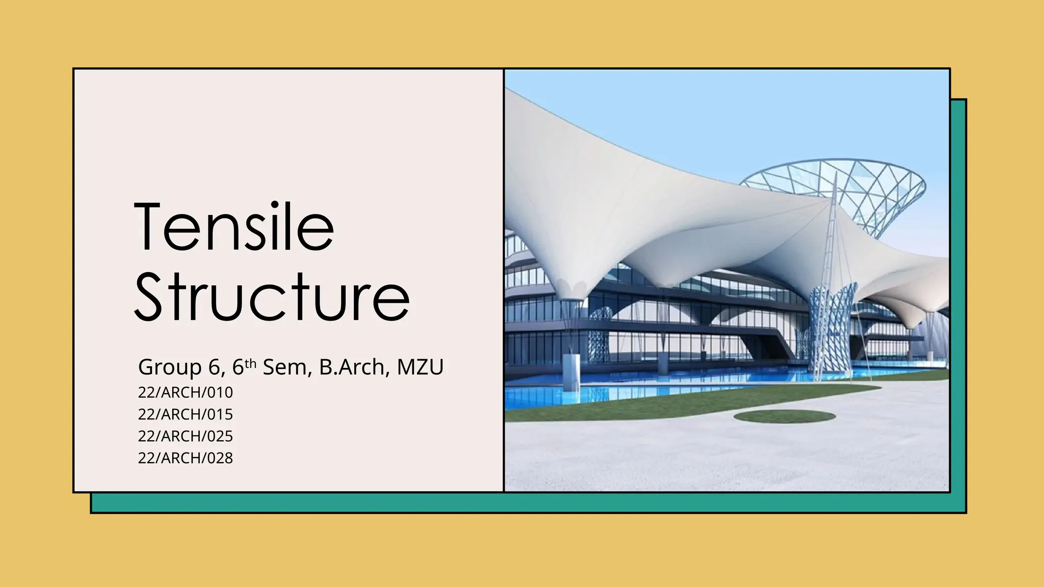 • Tensile structures rely on double-curved surfaces to evenly distribute