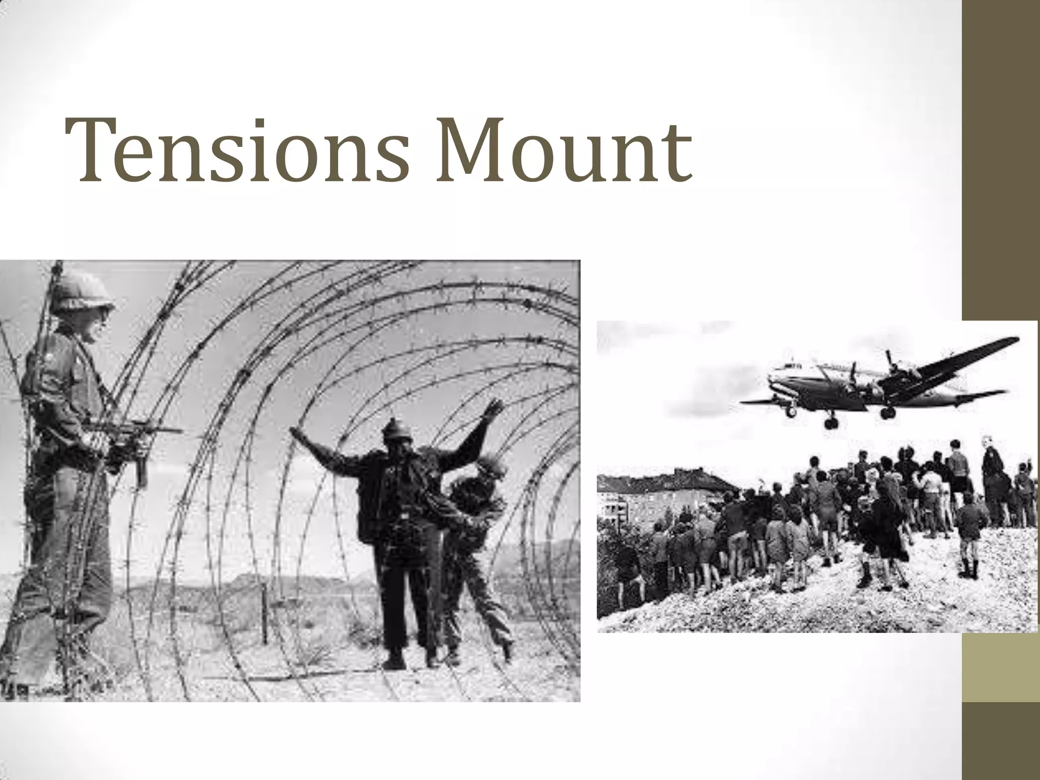 After World War 2, tensions rose between the US and its allies and the Soviet Union. The Soviets blockaded Berlin to push out Western influence, but the US airlifted supplies in response. This proved to the US that the Soviets could cause problems. In 1949, the US and allies formed NATO as a military alliance to counter the Soviet threat, while the Soviets formed the Warsaw Pact with Eastern European nations under its control. The Soviets sought to spread communism globally through both military alliances with neighboring states and ideological influence in countries experiencing revolutions.