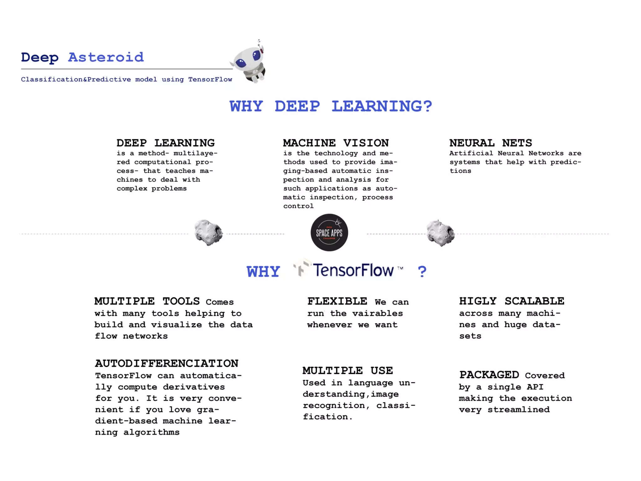 The document provides an extensive overview of TensorFlow, an open-source Python library for artificial intelligence that facilitates the creation of deep neural networks for various applications like image recognition and language understanding. It details key features of TensorFlow, including its flexible architecture, support for parallel computations, and tools for model visualization, along with the core distinctions between machine learning and deep learning. Additionally, it outlines the process of building and training neural networks, emphasizing the importance of data selection and knowledge representation in neural network design.