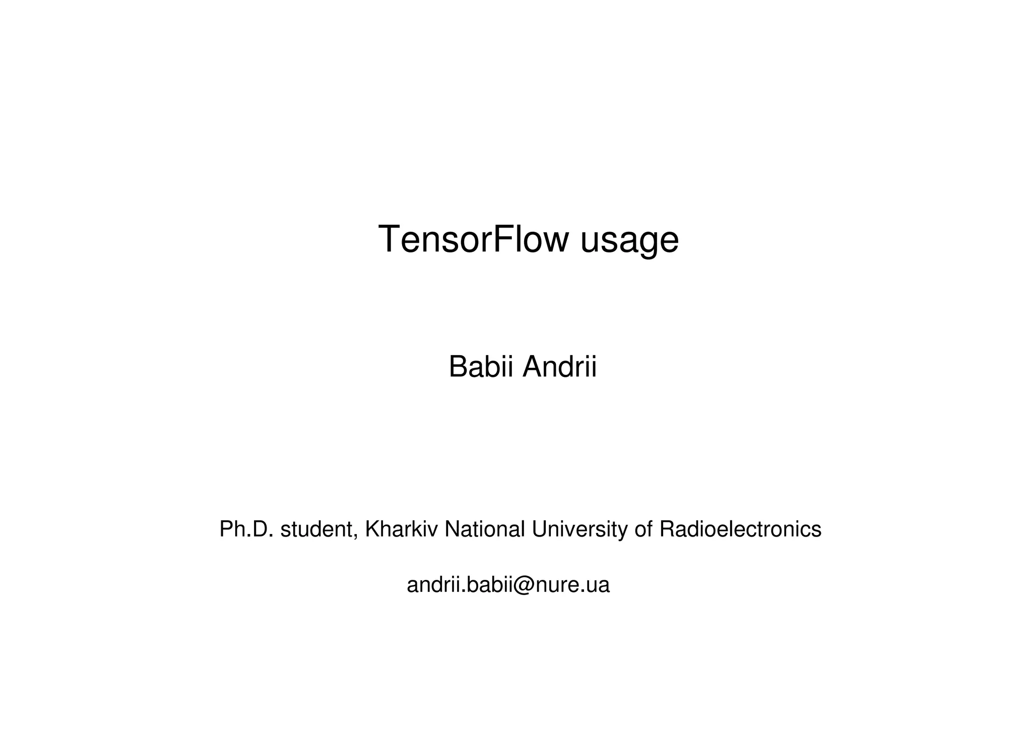 The document provides an overview of TensorFlow, highlighting its key features such as data and model parallelism, computational graph abstraction, and support for Python and C++. It discusses TensorFlow's architecture, core concepts like tensors and operations, as well as extensions like automatic differentiation and control flow. Additionally, it includes practical examples and code snippets for creating a linear regression model using TensorFlow.