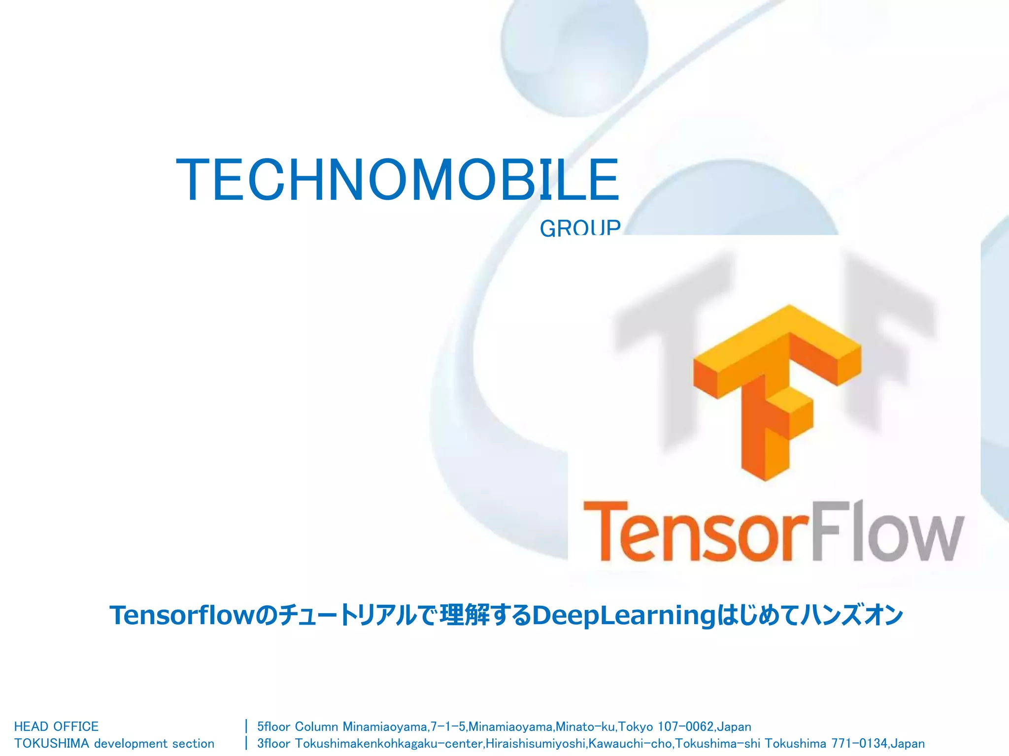 ハンズオン形式でTensorflowのMINISTチュートリアルを解説しています。