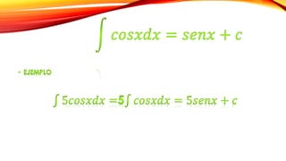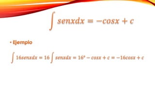 This document outlines 15 integration theorems with examples, including: 1) Integrating a with respect to x equals ax + c 2) Integrating sec^2(x) with respect to x equals tan(x) + c 3) Integrating csc^2(x) with respect to x equals -cot(x) + c