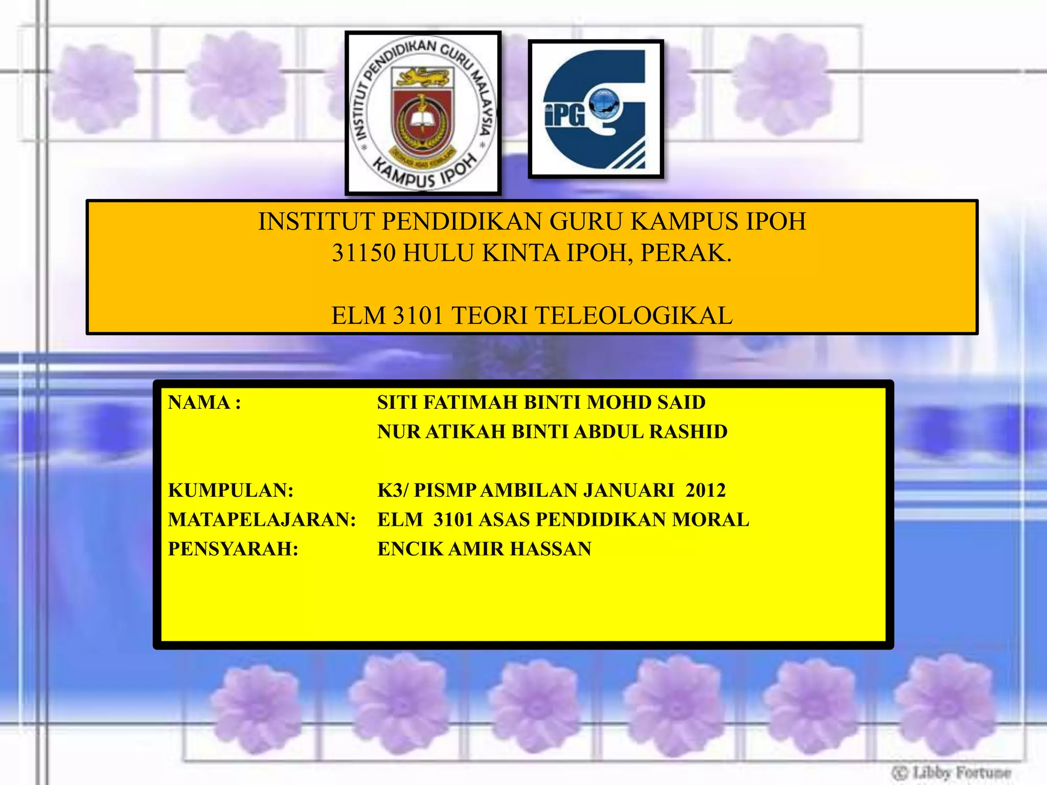 Dokumen ini membahas teori teleologikal, termasuk utilitarianisme dan egoisme, yang merupakan dua pandangan berbeza tentang moralitas. Utilitarianisme menekankan tindakan yang menghasilkan kebahagiaan terbesar, sementara egoisme berfokus pada keuntungan individu. Kedua-dua teori mempunyai kelebihan dan kelemahan, dan penting untuk berhati-hati dalam menerima fahaman ini dalam kehidupan seharian.