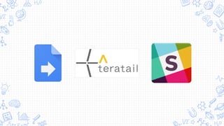 第六回 teratail Meetup ”集まっtail”での登壇スライドです。 今回はGoogleAppsScriptとSlackIncomingWebhookでteratailの質問を通知するスクリプトを作りました。 どれもキーの取得や実装が簡単で、手軽に実装できるので1時間もあれば作成できてしまいます。 通知で使用したソースコードは以下で公開しています。 https://gist.github.com/tai-sho/5aa91c6e3db9d98ea3f71ce9ef9cb155