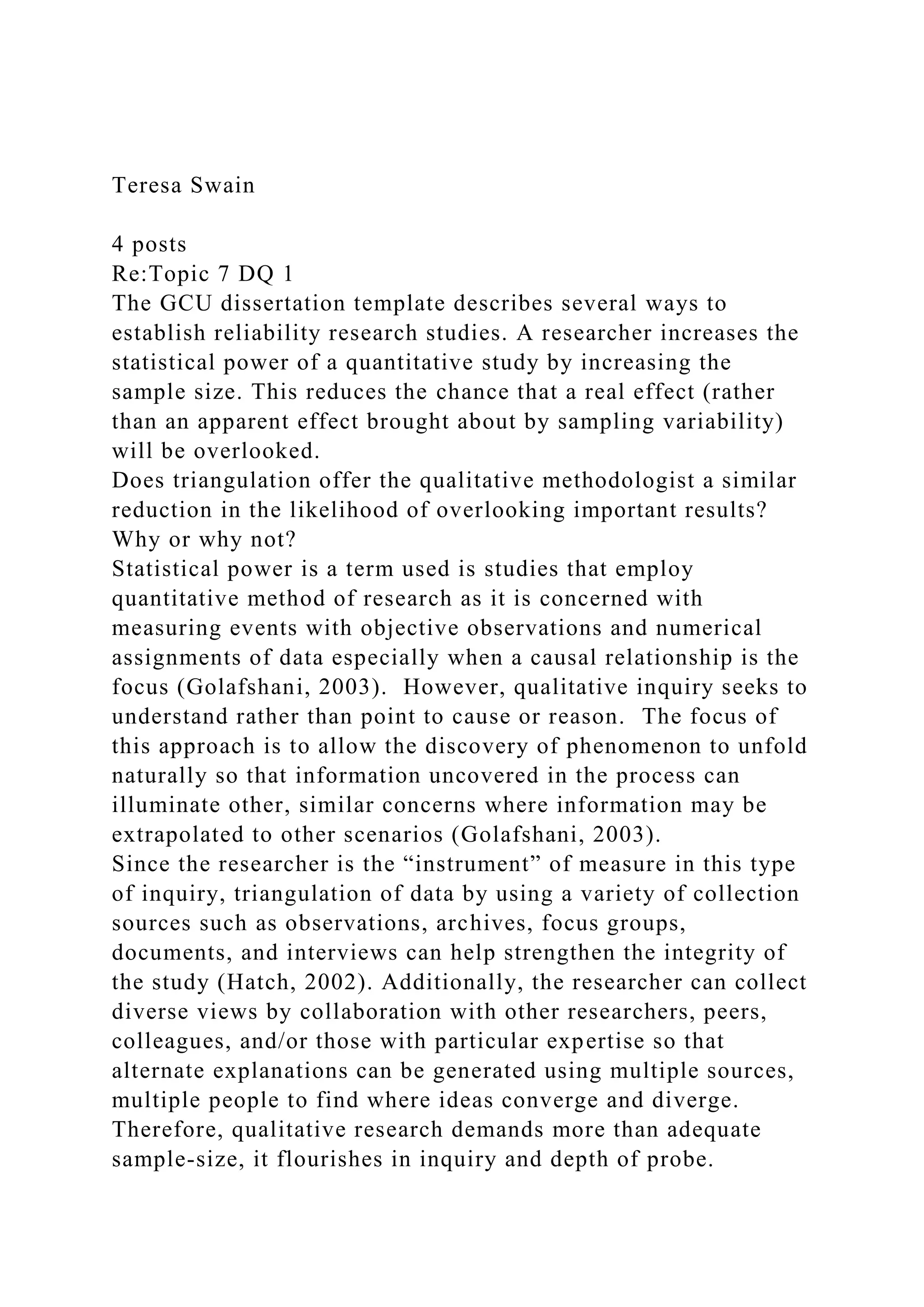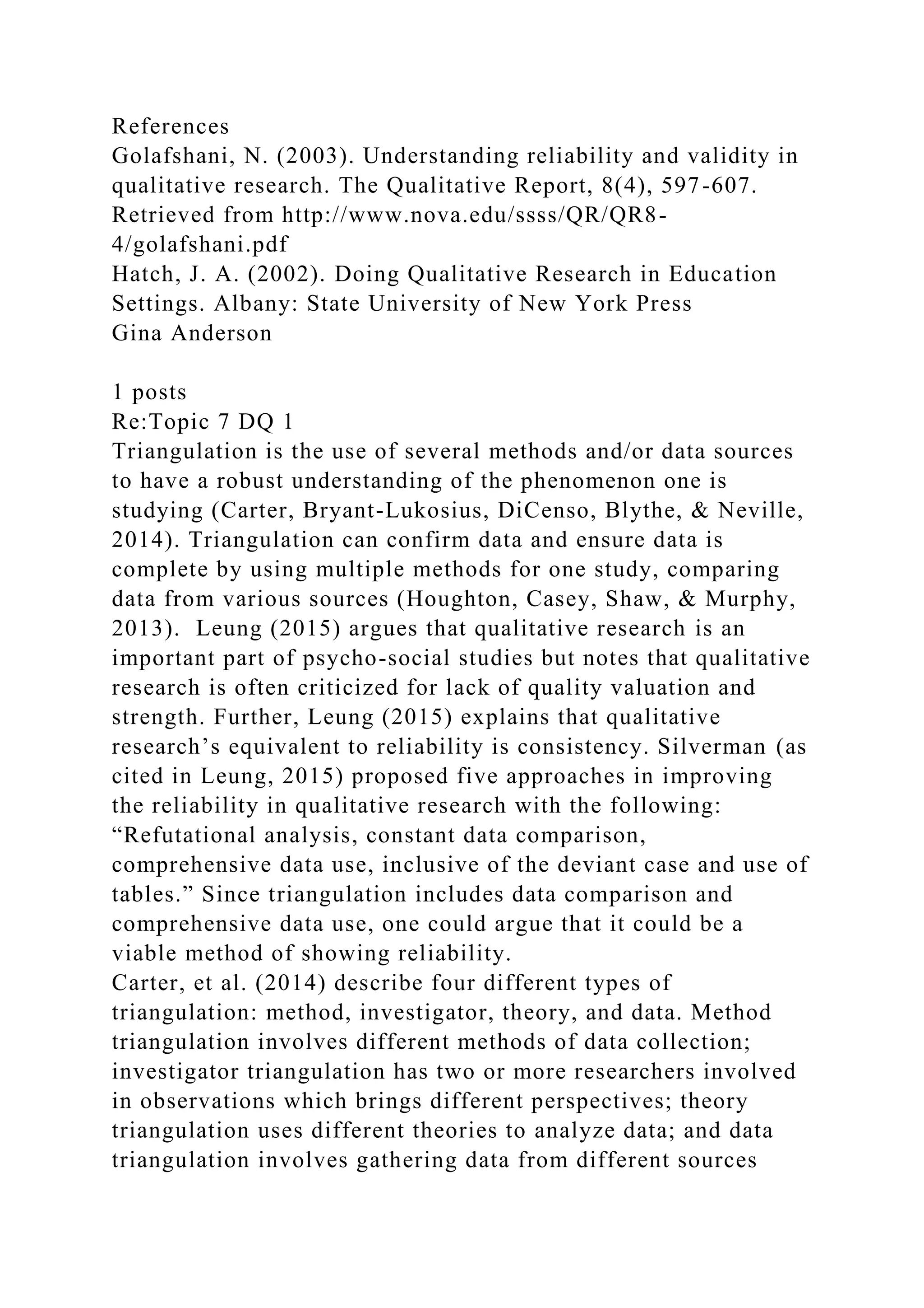 The document discusses the importance of reliability and validity in qualitative research, emphasizing techniques such as triangulation and reflexivity to enhance the integrity of studies. Triangulation involves using multiple data sources or researchers to gain a comprehensive understanding, while reflexivity allows researchers to reflect on and mitigate their biases. Ensuring validity requires careful consideration of research questions, methodology, and the researcher's influence on findings.