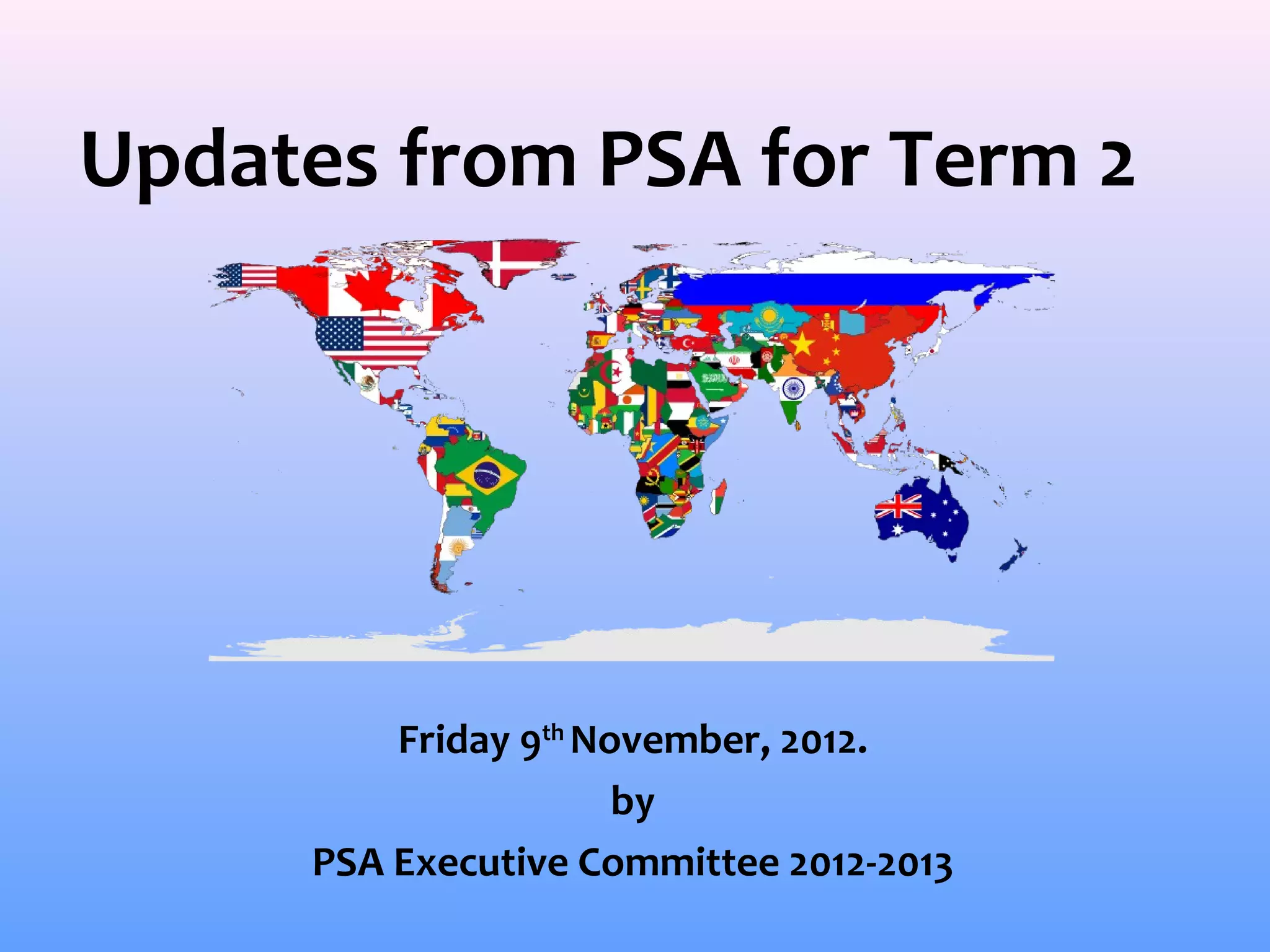 The PSA provided updates for term 2, highlighting recent and upcoming sports activities including tournaments and food sales planned for November. They reported an income of 14,765 baht from previous events and merchandise information. The PSA encourages parental support for athletes and merchandise sales to sustain sports programs.