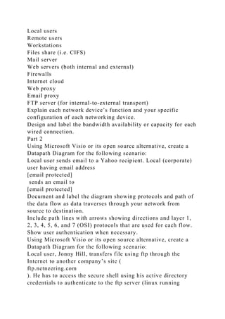 The term paper requires creating a secure network design to support email, file transfer, and VPN services. It includes crafting three workflow diagrams to illustrate the transaction processes for each service, as well as an overall network diagram following a layered model, detailing device functions, configurations, and security measures. Additionally, a write-up should address design protection from attacks, potential bottlenecks, and secure file transfer methods, supported by quality resources and adhering to specific formatting guidelines.