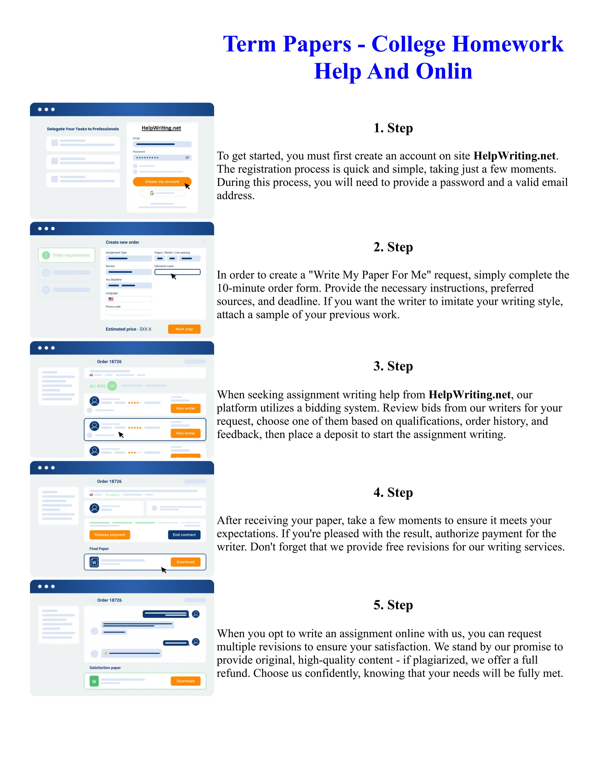 The document provides instructions for getting college homework help online from HelpWriting.net in 5 steps: