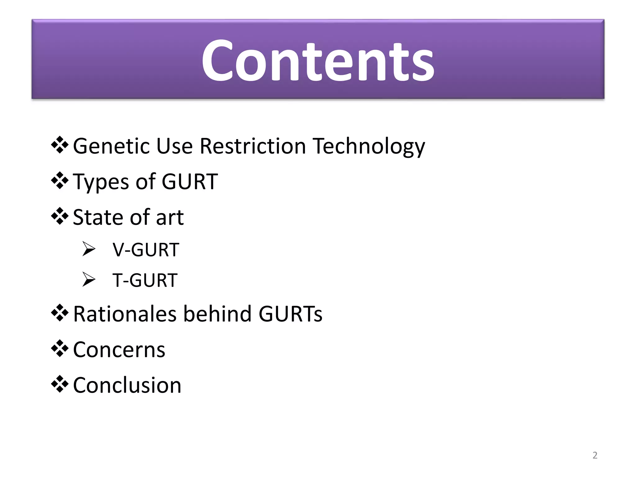 Ishan Mehta's document discusses terminator gene technology and its applications in crop improvement. It defines genetic use restriction technologies (GURTs) as methods that use genetic switches to restrict unauthorized use of genetic material by preventing reproduction (V-GURT) or controlling trait expression (T-GURT). The document provides a history of GURTs, including early patents, protests against their use over concerns about seed saving practices and corporate control, and moratoriums imposed by various organizations. It also outlines the current state of GURT patents.