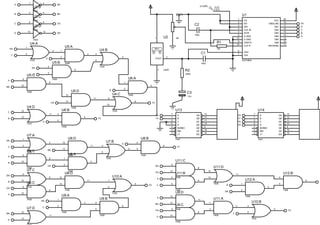 This document contains a circuit diagram with multiple integrated circuits including an ADC0804 analog-to-digital converter, LM35 temperature sensor, 7404, 7432, 7408, and 7447 logic gates. The circuit has connections between the pins of the ICs to implement digital logic functions.