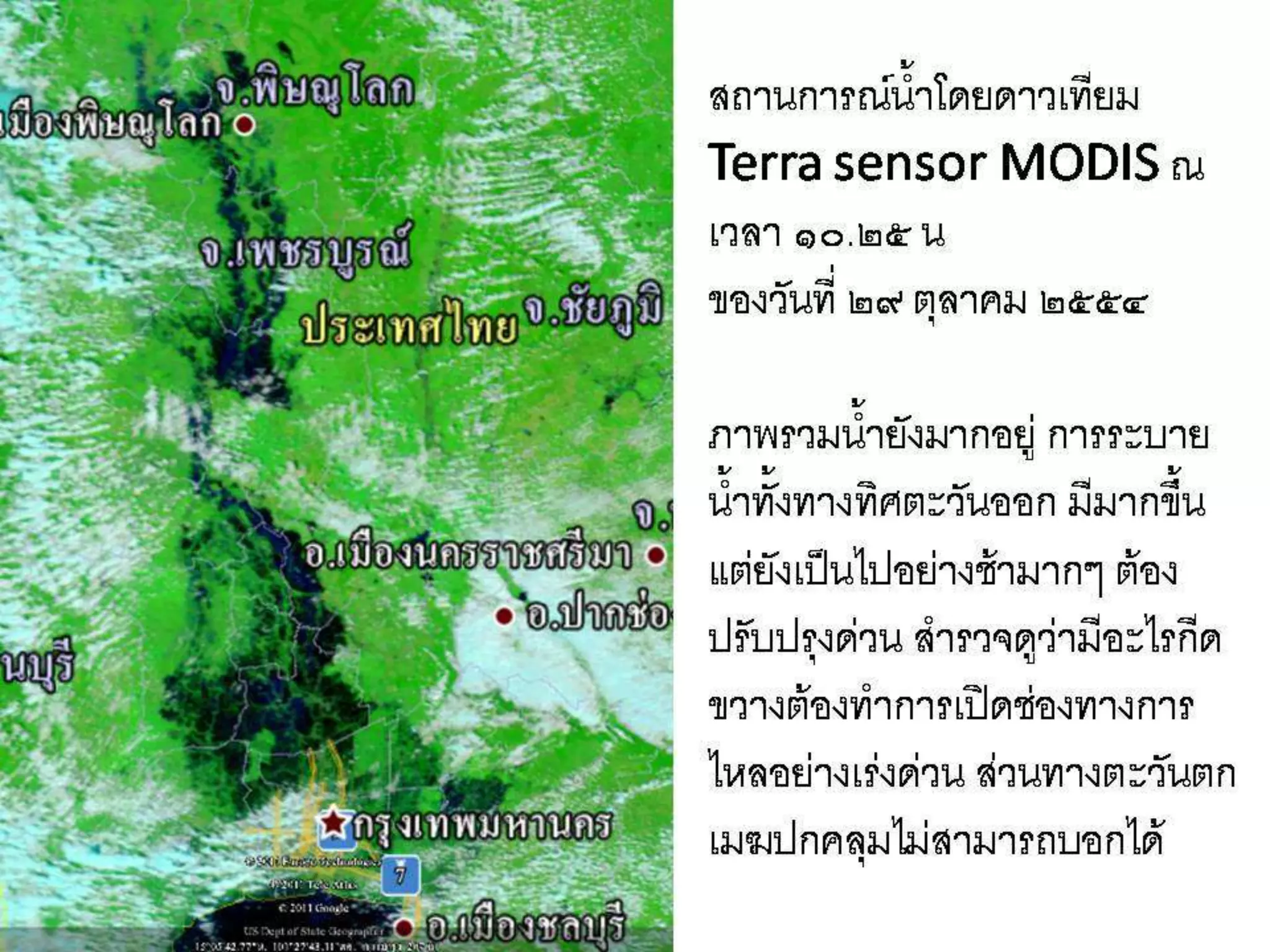 สถานการณ์น้ำโดยดาวเทียม Terra sensor modis ณ เวลา ๑๑.๓๐ น ๒๖ ตุลาคม ๕๔ PPTX