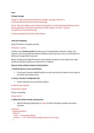networks. Since you already have Docker installed on your cloud server, you can use Terraform to