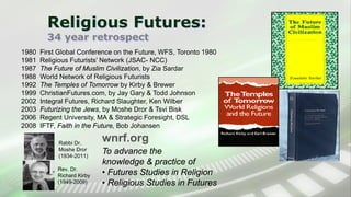 The World Future Society's 2014 conference in Orlando focused on the theme 'Terra Nova: The Religious Quest for Tomorrow,' examining the evolution and future of religious thought and its role in shaping humanity. Panels discussed the spiritual imagination and its potential to inspire transformative visions for the future, while highlighting historical references such as the ancient site Gobekli Tepe. The event also showcased the integration of arts and media in fostering social change through immersive experiences and collaborative projects.