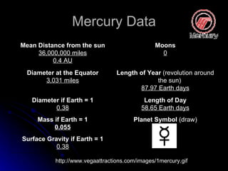 The document provides information about the planets Mercury and Venus: