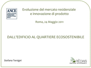 Il documento discute il quartiere Casal Bertone di Roma, evidenziando la sua riqualificazione come esempio di sostenibilità urbana, con focus su innovazioni edilizie e certificazioni ambientali come CasaClima e LEED. Viene analizzata la progettazione di edifici eco-sostenibili, attraverso l'uso di materiali specifici, impianti energetici avanzati e una gestione intelligente degli spazi. La sinergia tra istituzioni, università, cittadini e imprese è sottolineata per promuovere l'integrazione e l'innovazione nel contesto urbano.
