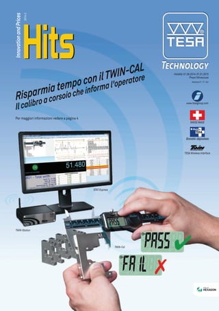 Il documento presenta una gamma di strumenti di misurazione TESA, compresi micrometri, comparatori e calibri a corsoio, evidenziando specifiche tecniche, prezzi e applicazioni. Include dettagli su vari modelli, opzioni di connettività wireless e software per la gestione dei dati. Vengono anche menzionati i vantaggi della qualità costruttiva e delle applicazioni in ambienti di lavoro difficili.