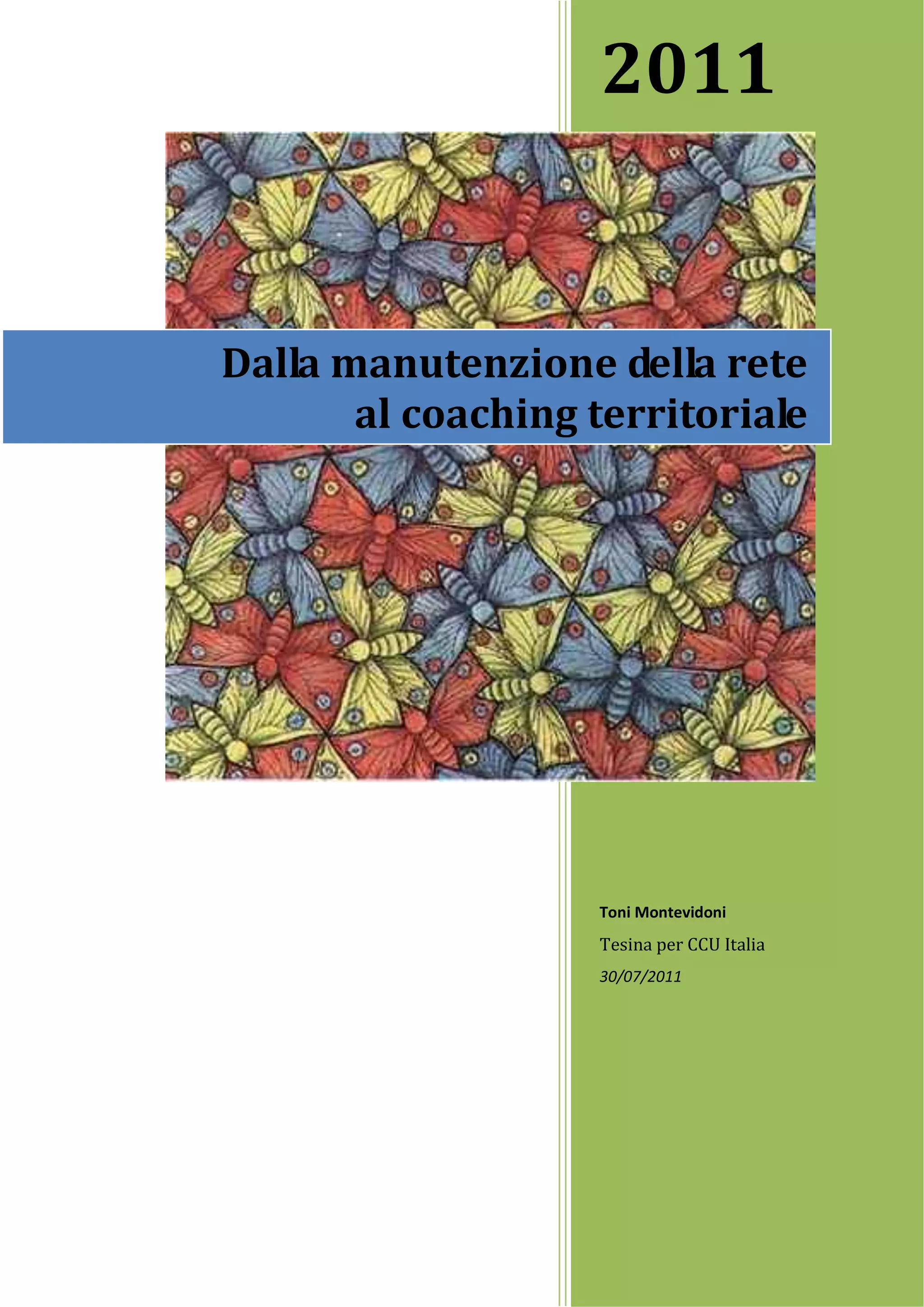 Il documento discute la necessità di un nuovo modello socio-economico, evidenziando come il sistema attuale neoliberista stia mostrando i suoi limiti e stia emergendo un'altra economia basata su solidarietà e mutualismo. Sottolinea l'importanza del coaching territoriale per facilitare la transizione verso queste pratiche alternative, promuovendo governance sostenibili e una maggiore consapevolezza tra i soggetti attivi nei vari territori. Viene anche analizzato il concetto di economia solidale come risposta alle sfide del capitalismo, evidenziando l'interconnesione tra economia, democrazia e cultura per favorire uno sviluppo sociale più equo e sostenibile.