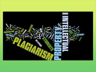 The document explores the relationship between plagiarism and intellectual property, particularly as it pertains to international students and faculty at a large midwestern university. It analyzes attitudes towards plagiarism through surveys and focus groups, revealing low degrees of agreement among students on various scenarios related to plagiarism. It also discusses teaching strategies to address these differences and improve understanding of plagiarism in an academic context.