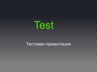 Документ представляет собой тестовую презентацию, содержащую три отдельных тестовых слайда. Каждая презентация, вероятно, охватывает различные аспекты тестирования. В целом, это инструмент для демонстрации или проверки концепций.