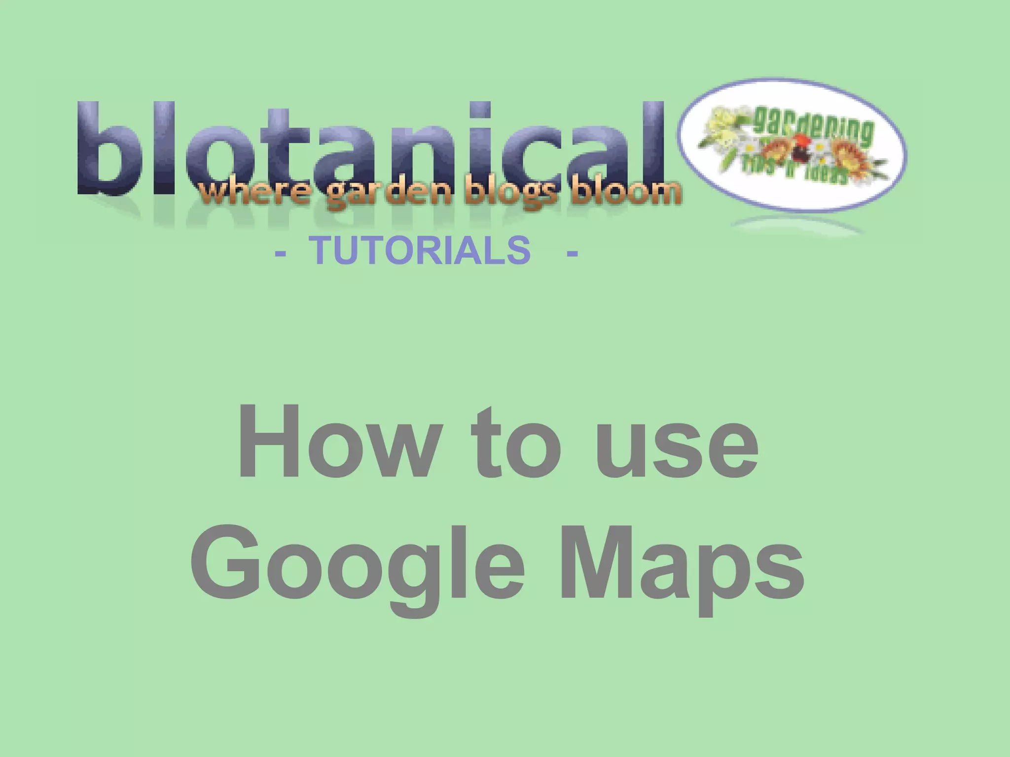 This document provides instructions for how to navigate and use tools on Google Maps. It explains how to zoom in and out using buttons or double clicking, how to move around the map by dragging the mouse or using arrows, and how flowers on the map mark blogger locations that can be clicked to visit. Shortcuts for navigation are also described.