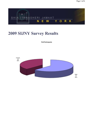 The survey results can be summarized in 3 sentences: The survey polled 138 participants, most of whom were male (62%) between the ages of 31-40 (41%). Understanding of Urdu varied, with 35% understanding it very well and 45% at a moderate level. The most important factor for most participants in deciding to attend the mosque was the occasion or event (59%), followed by the speaker (32%).