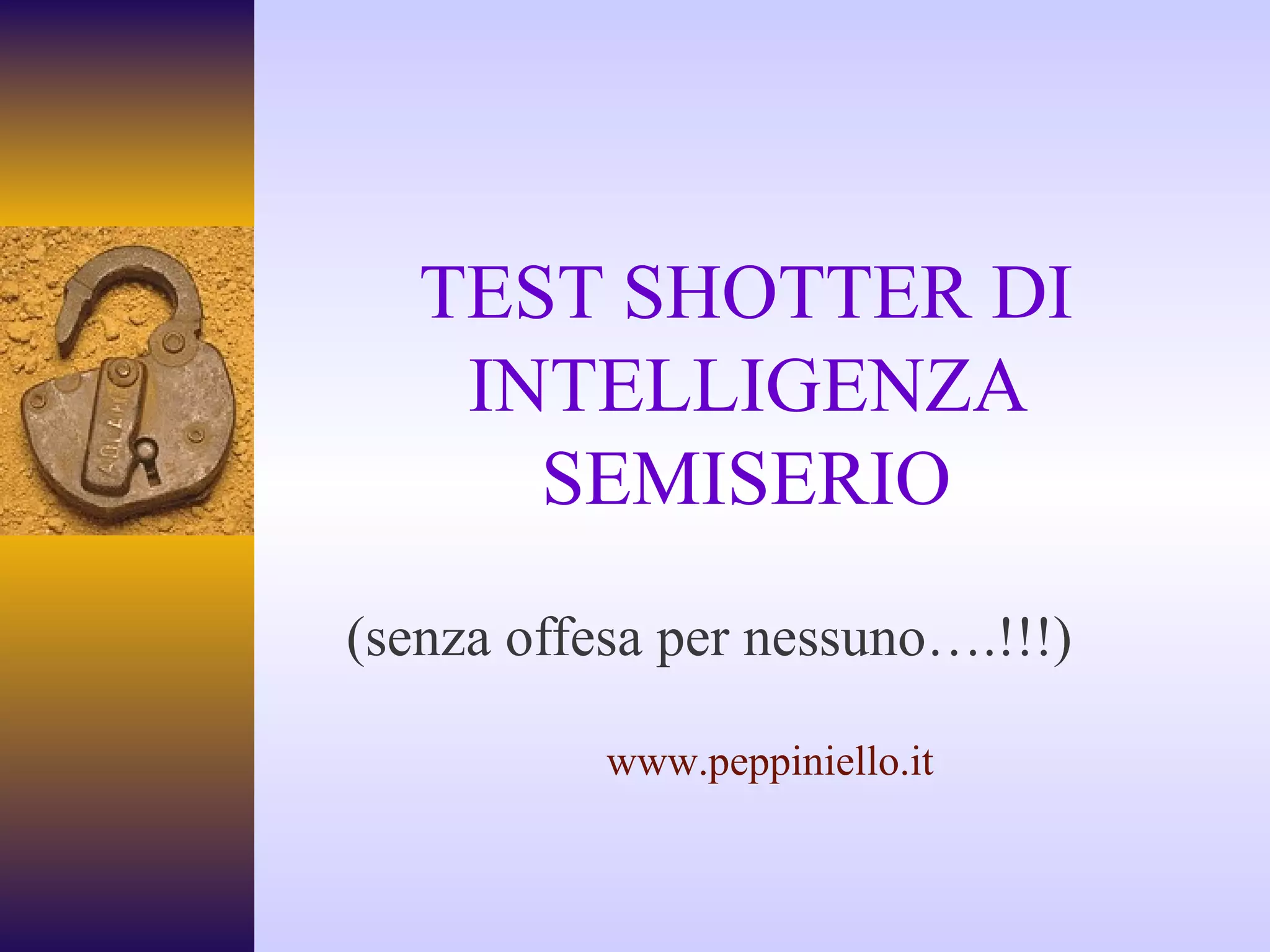 Il documento presenta un test di intelligenza con domande trabocchetto e risposte sorprendenti, invitando i partecipanti a rispondere in modo rapido. Viene anche sottolineato che punteggi elevati nei test non determinano automaticamente il successo nella vita. Alla fine, si offre una valutazione del punteggio ottenuto nel test e un messaggio di incoraggiamento per chi non ha risposto correttamente.