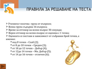 ПРАВИЛА ЗА РЕШАВАНЕНА ТЕСТА