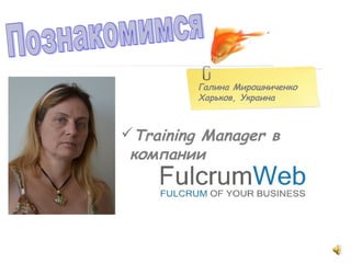 Галина Мирошниченко из Харькова, Украина, работает тренинг-менеджером в компании, занимающейся подготовкой специалистов для IT. В документе обсуждается проблема нехватки согласия среди коллег и важность совместной работы для успешного выполнения задач. Также упоминается о выпускниках и роли вузов в подготовке кадров для отрасли.