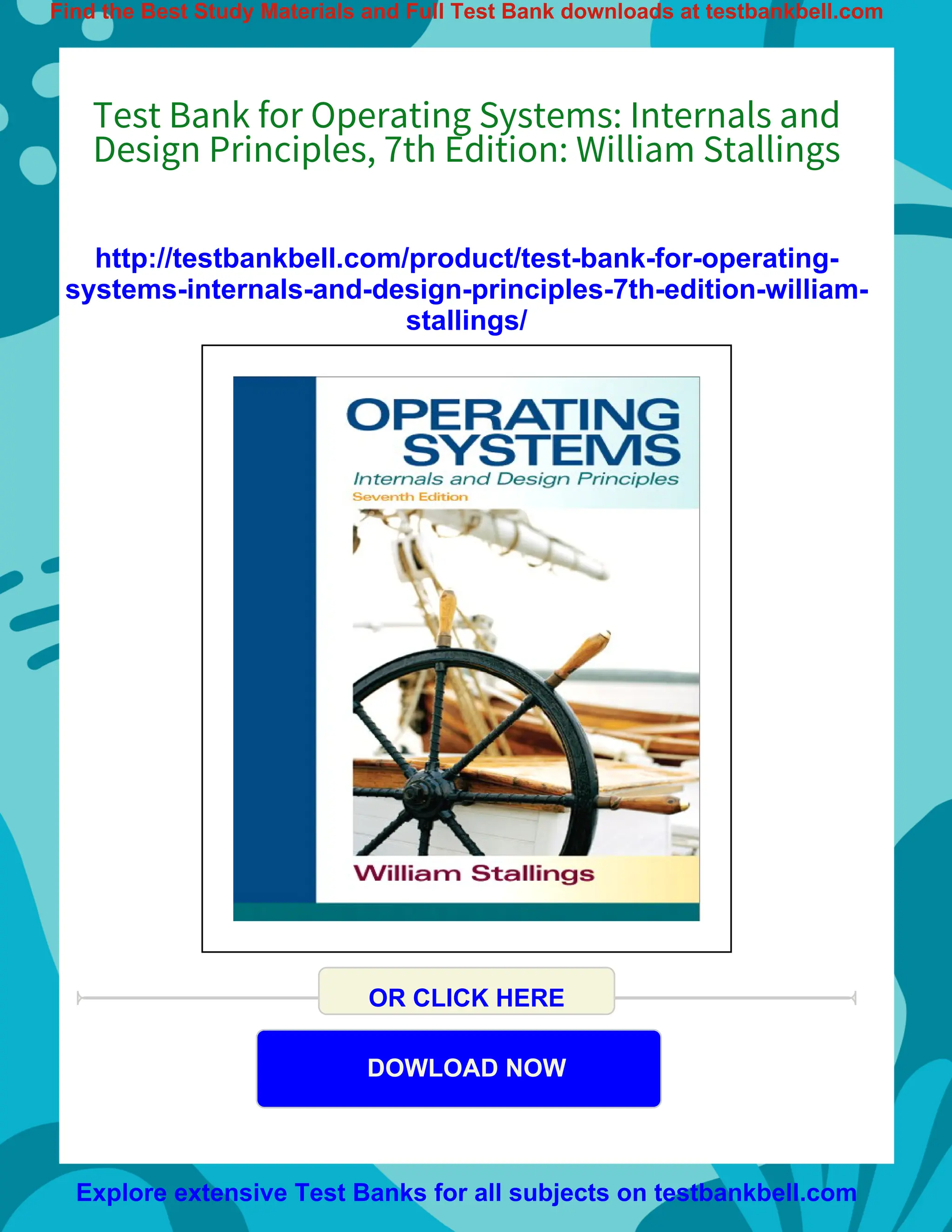 Find the BestStudy Materials and Full Test Bank downloads at testbankbell.com Test Bank for Operating Systems: Internals and Design Principles, 7th Edition: William Stallings http://testbankbell.com/product/test-bank-for-operating- systems-internals-and-design-principles-7th-edition-william- stallings/ OR CLICK HERE DOWLOAD NOW Explore extensive Test Banks for all subjects on testbankbell.com