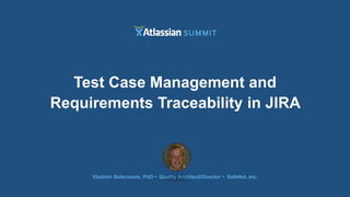 SafeNet is a cybersecurity company founded in 1983 that protects sensitive data for major brands. It protects $1 trillion in daily money transfers and the most digital identities and classified information worldwide. The presentation discusses using Jira for test case management and requirements traceability. Key requirements for test case management include seamless integration with Jira, treating test cases as normal issues, linking test cases to user stories and bugs, and executing test cases across multiple independent test plans in parallel.