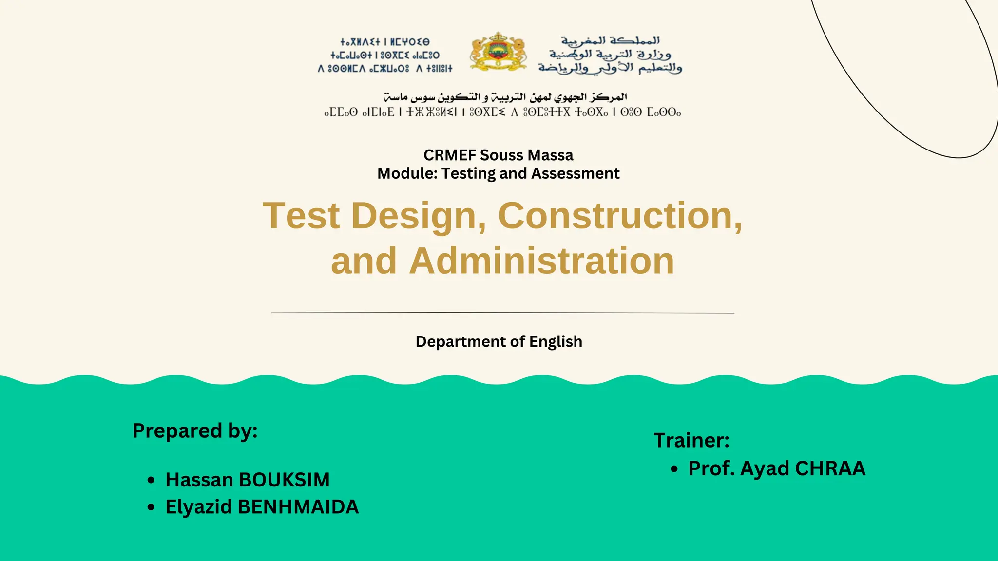 This presentation provides a comprehensive overview of key concepts and best practices in test construction, administration, and scoring, particularly within English as a Foreign Language (EFL) and English as a Second Language (ESL) contexts. It explores the principles of effective test design, including validity, reliability, and practicality (implicitly). The slides also discuss the steps involved in developing fair and balanced assessments, tips for administering tests efficiently, and methods for scoring objectively and accurately. This resource is ideal for language teachers, trainee educators, and researchers interested in language assessment and evaluation.