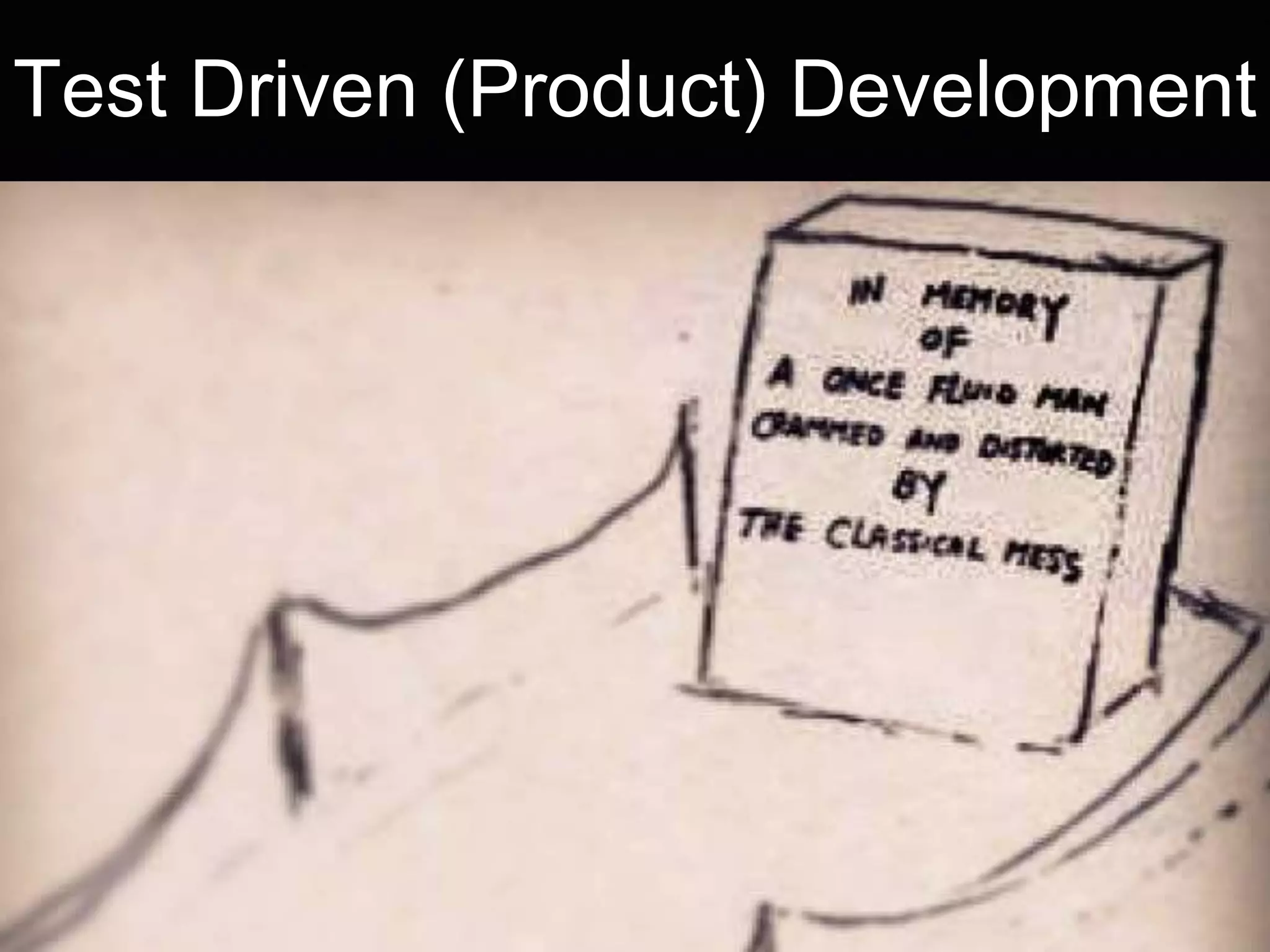 The document discusses test-driven product development and the role of product managers, highlighting regional challenges and common frustrations such as adding features and managing backlogs. It emphasizes iterative learning, the importance of data and metrics, and involvement from stakeholders, particularly in youth services. The document also suggests a flexible approach to design and continuous iteration based on user feedback.