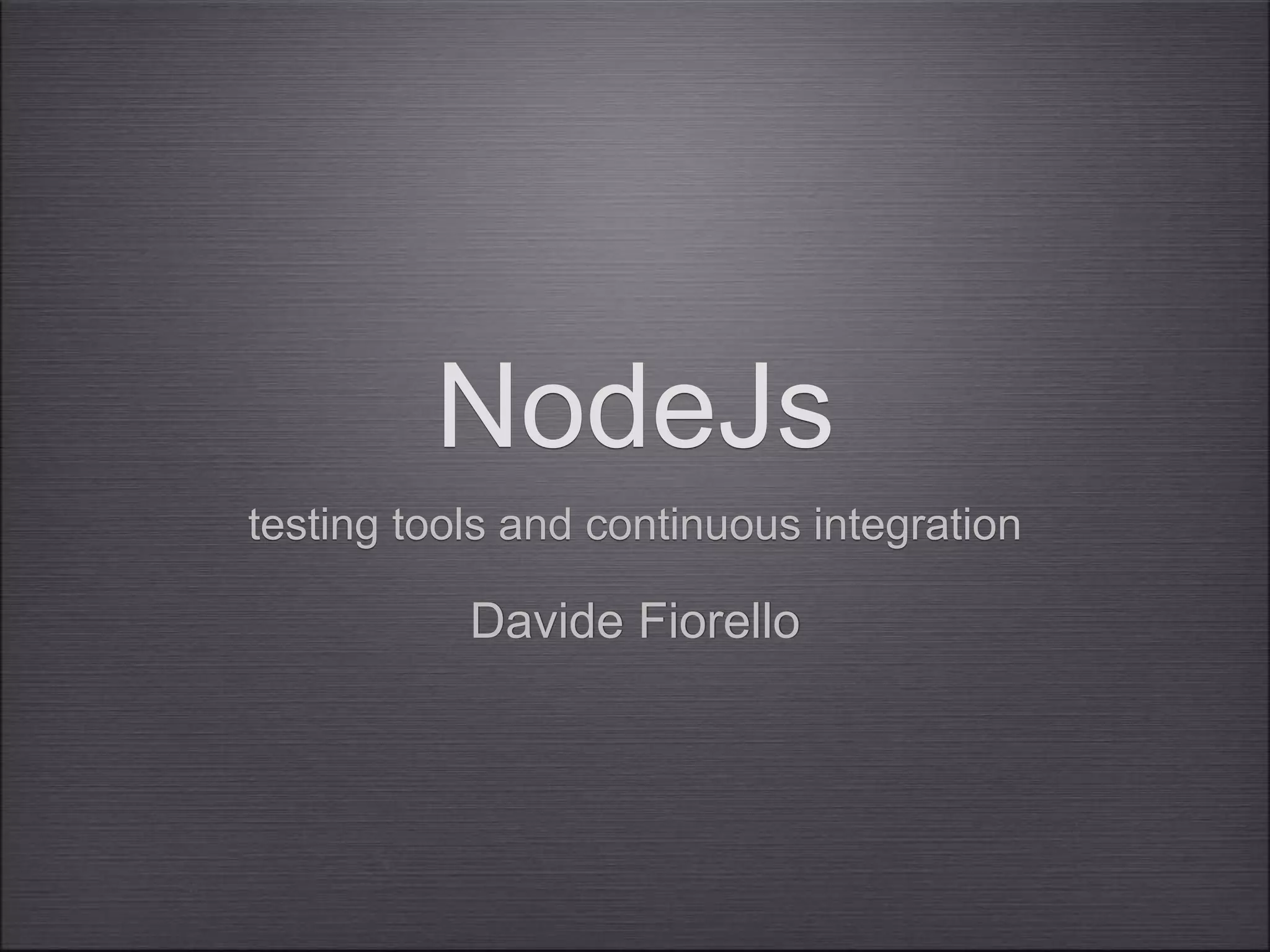 Mocha is a JavaScript test framework for Node.js and browsers that allows for BDD, TDD, and QUnit-style testing with features like asynchronous support, hooks, and skipping/focusing tests. Should.js is an assertion library that keeps test code clean and error messages helpful through expressive matchers. Sinon.js is a standalone test spy, stub, and mock library with no dependencies that works with any testing framework and provides features like spies, stubs, fakes, and assertions. Continuous integration tools like Drone, Travis CI, and Codeship automate running tests and building apps.