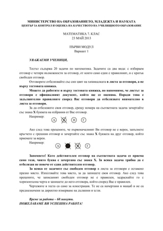 само този, чиято буква е зачертана със знака Х. За всяка задача трябва да е