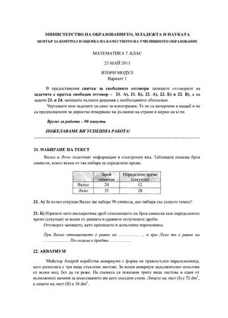Тестът съдържа 20 задачи по математика. Задачите са два вида: с избираем