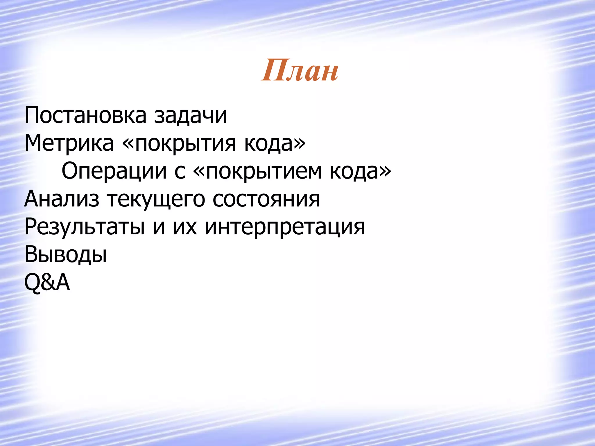 Документ обсуждает оптимизацию интерактивного тестирования с использованием метрики 'покрытие кода'. Было решено сократить количество тестов с ~300 до ~100, не значительно уменьшая покрытие кода. Кроме того, результаты показывают значительные потери покрытия для различных наборов тестов, что указывает на необходимость тщательного анализа применимости метрики 'покрытие кода' в процессе тестирования.